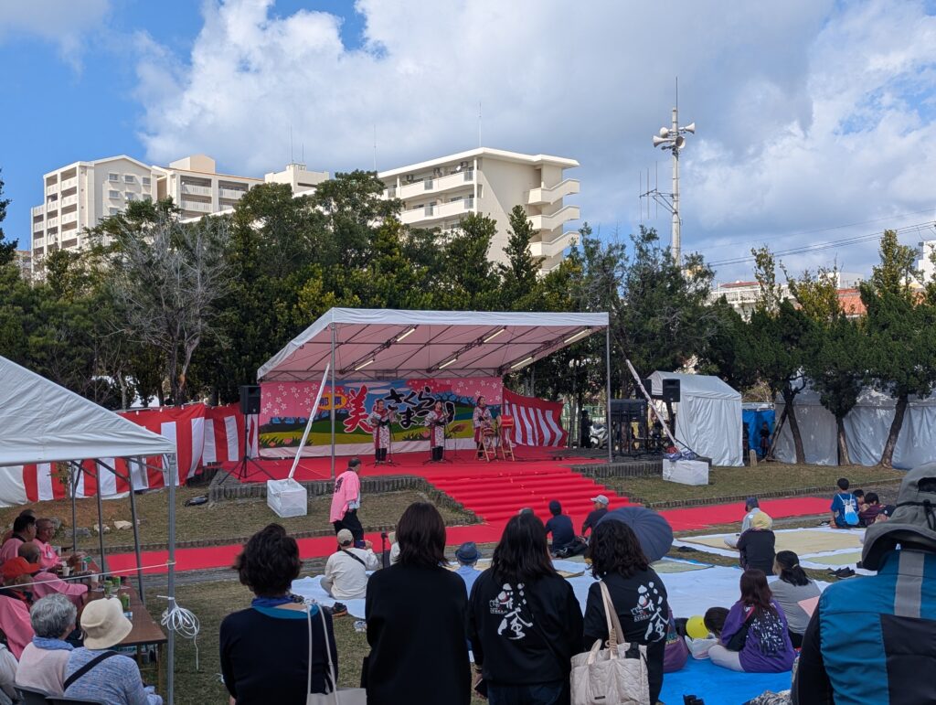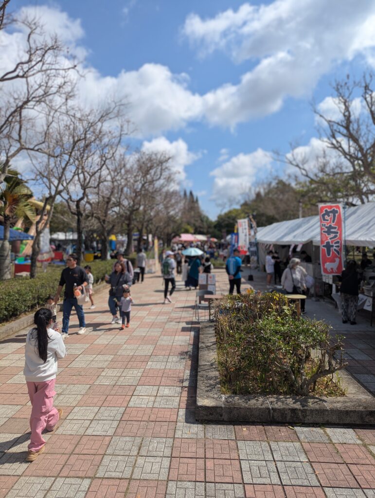 「那覇美らさくらまつり」がおこなわれ、大勢の人で賑わいをみせて見頃となっていた桜の木々を